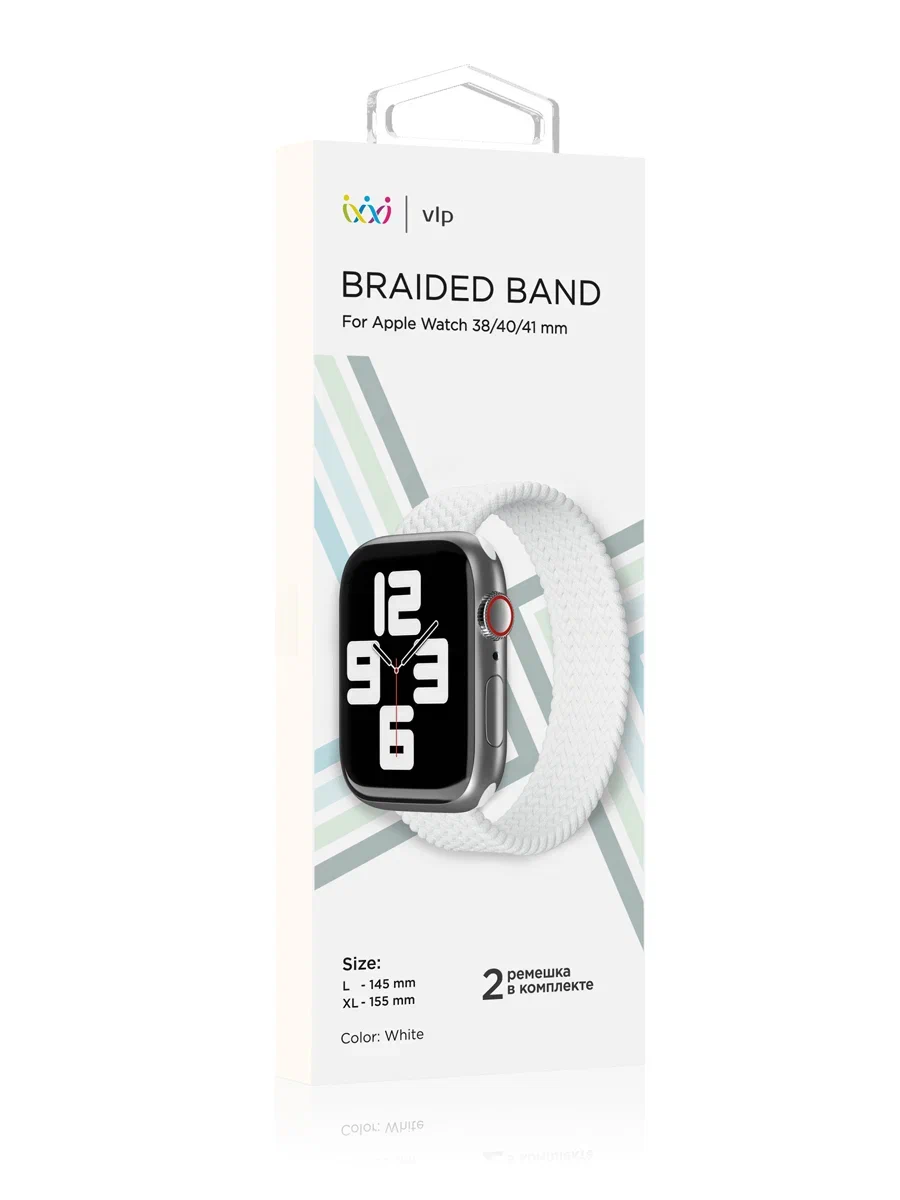 Ремешок нейлоновый плетёный "vlp" для Apple Watch 49/45/44/42mm, L/XL, 2шт, белый